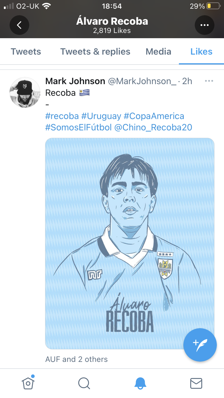 Álvaro Recoba appreciating my work on twitter.