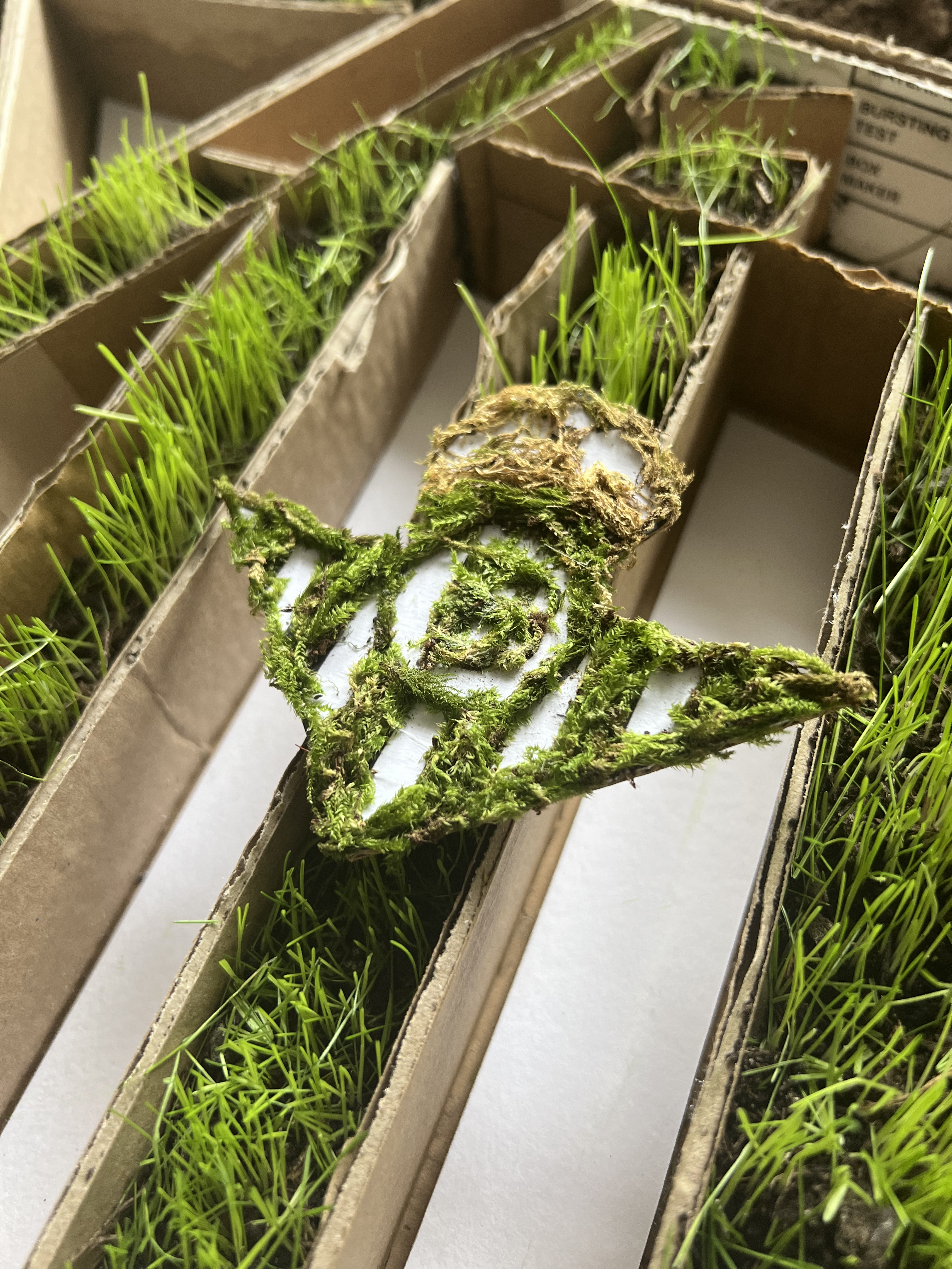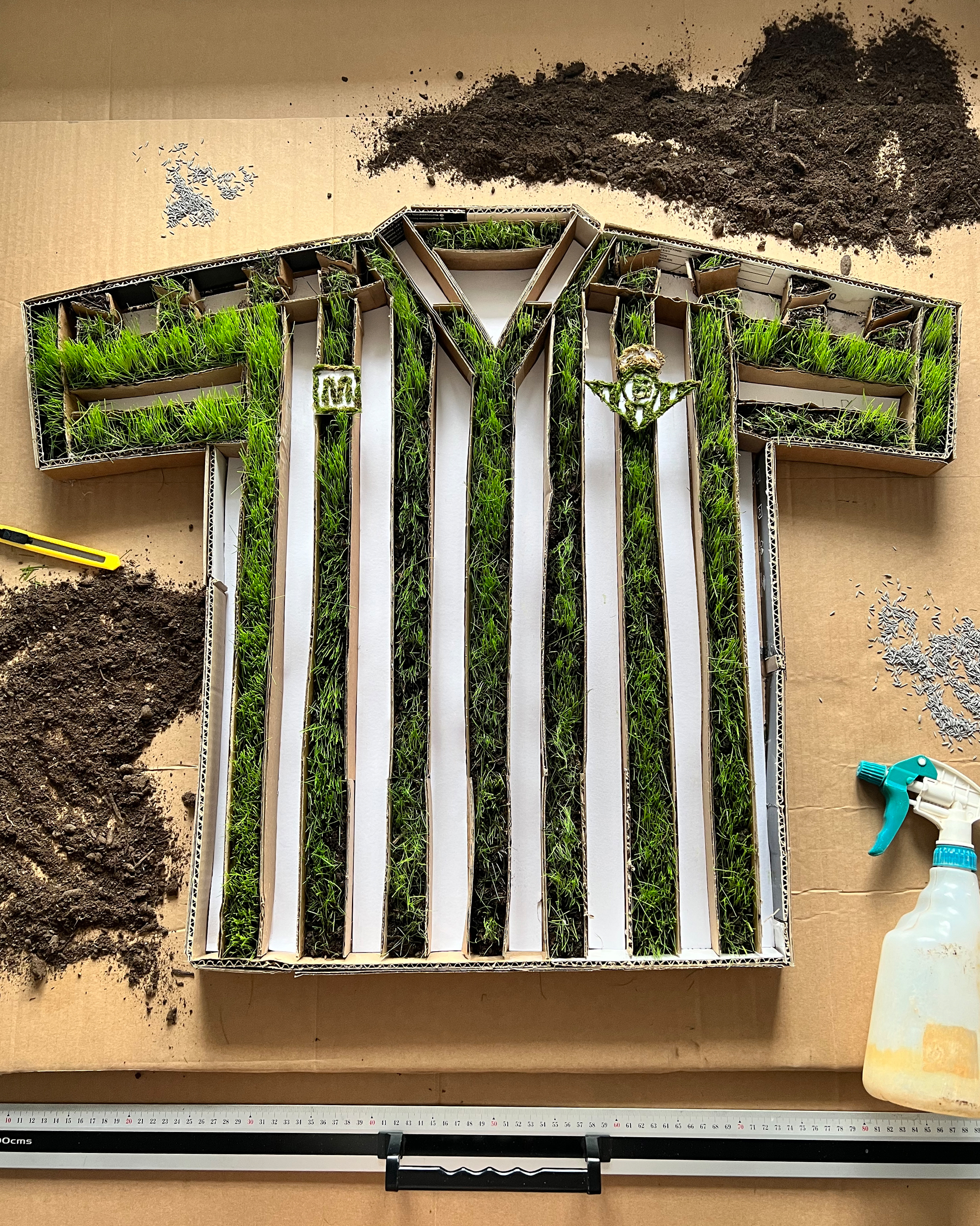 After 12 days I had to stop the project as the cardboard wouldn’t take much more water as it was so weak and starting to collapse. It was just enough time to add the moss for the crest and brand logo for the final shots.