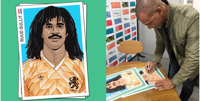 Fabric of football exhibition launch night at the National Football Museum w/ Classic Football Shirts. On the night Dutch legend Ruud Gulit signed my artwork.