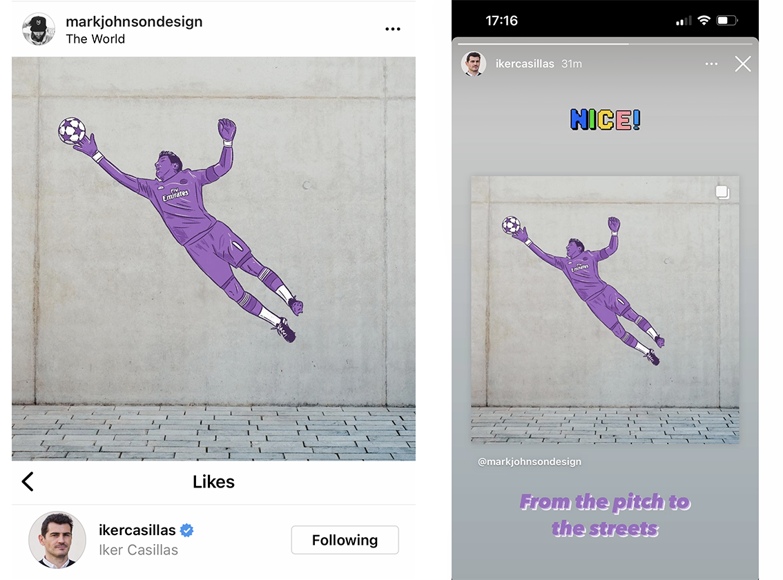 Iker Casillas appreciating my latest project Urban goal-keepers.