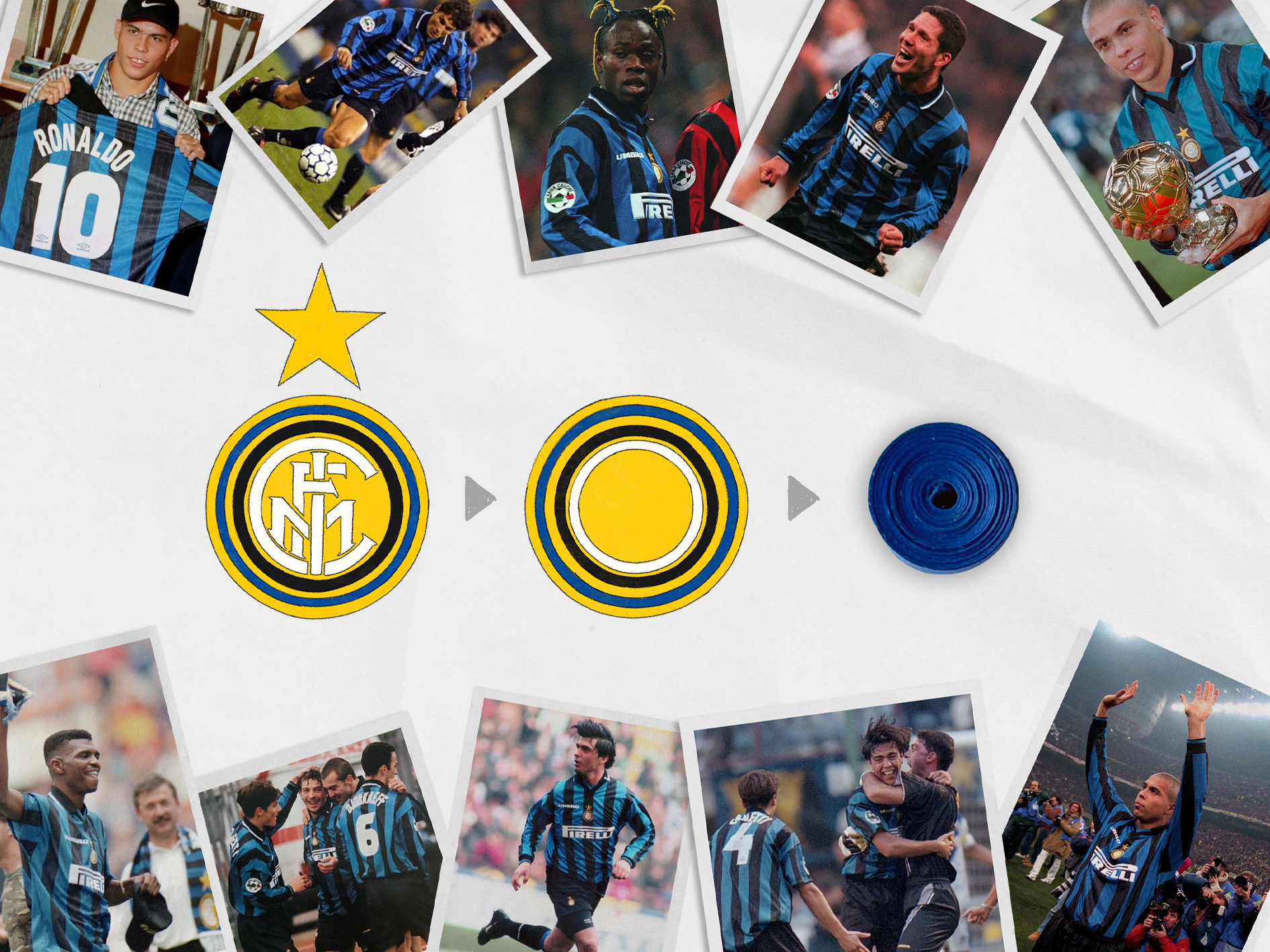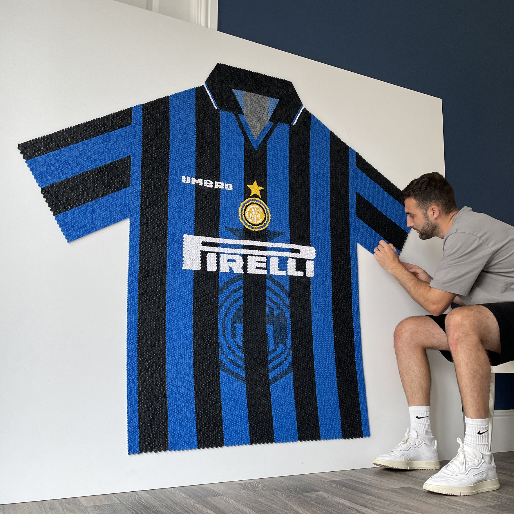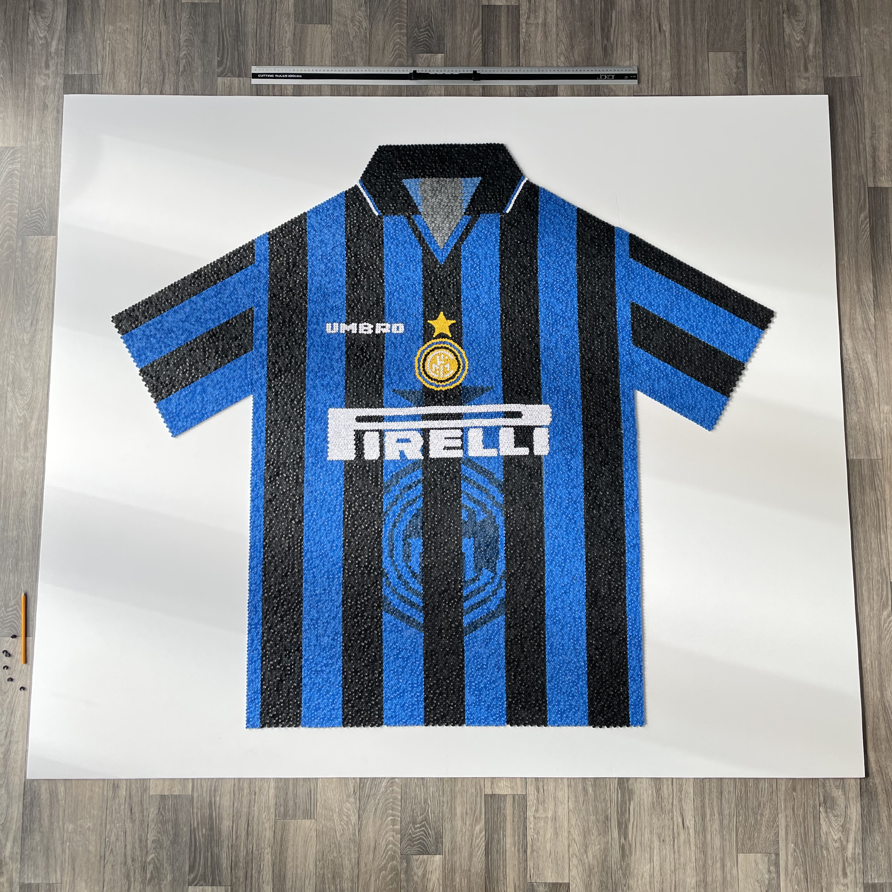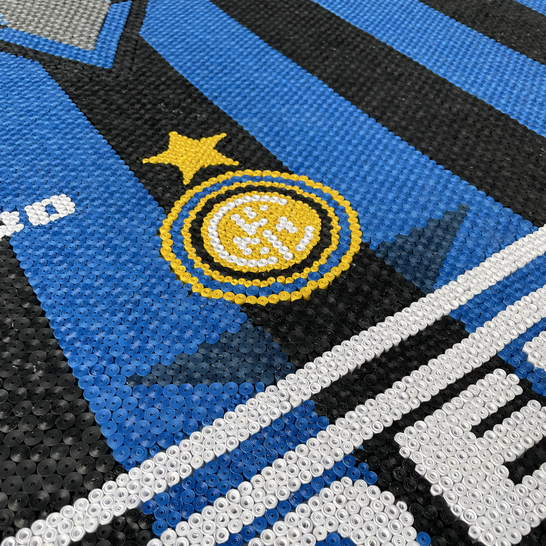 Inter 97 Over 23,000 paper coils on a 1.7m x 2m foam board to create the Inter Milan 1997 home shirt.