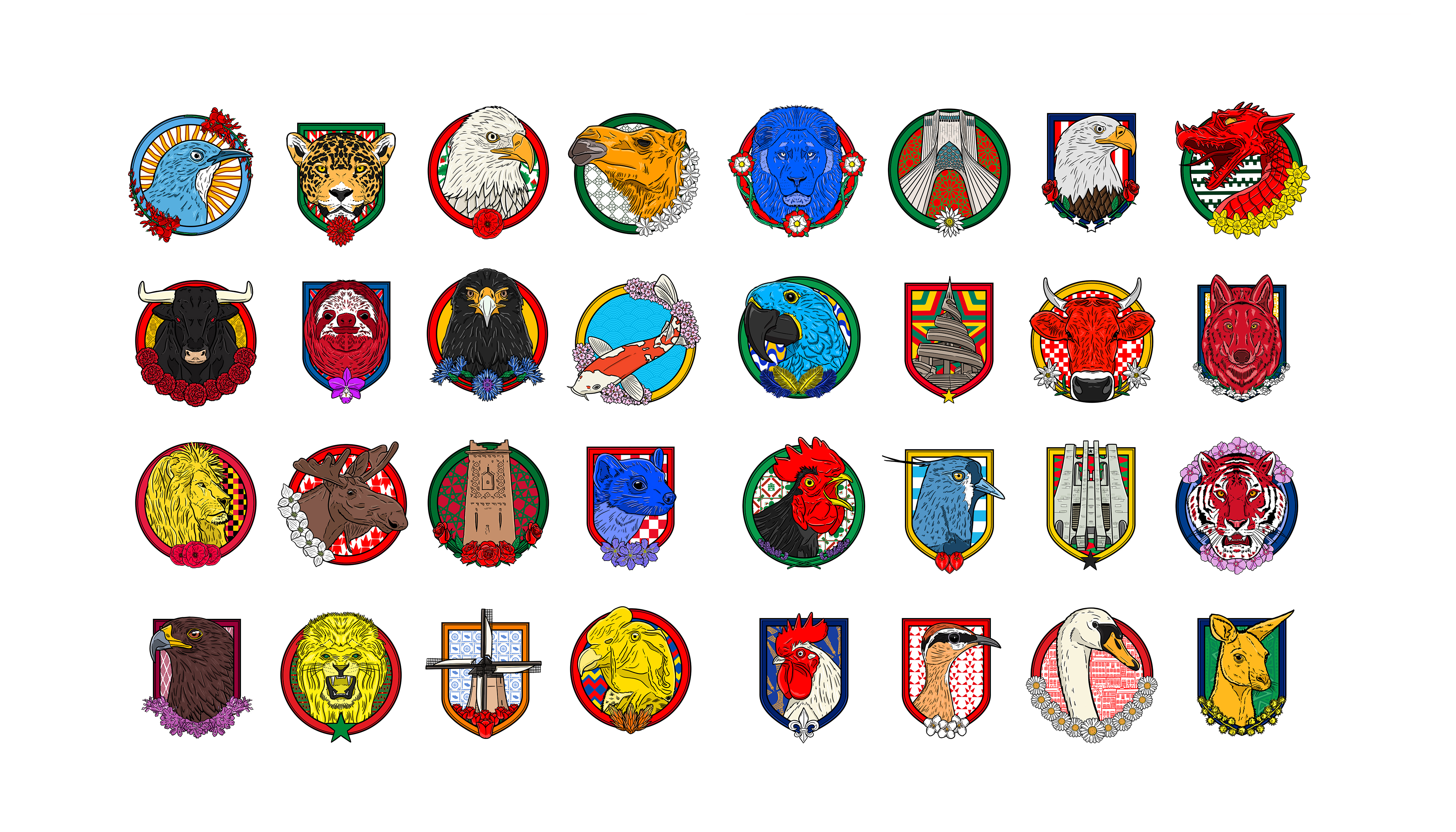 I created 32 crests for all the nations which were taking part in the 2022 tournament, using their nations animals, flowers and landmarks. These were used in the Top Eleven mini game called Penalty Clash.
